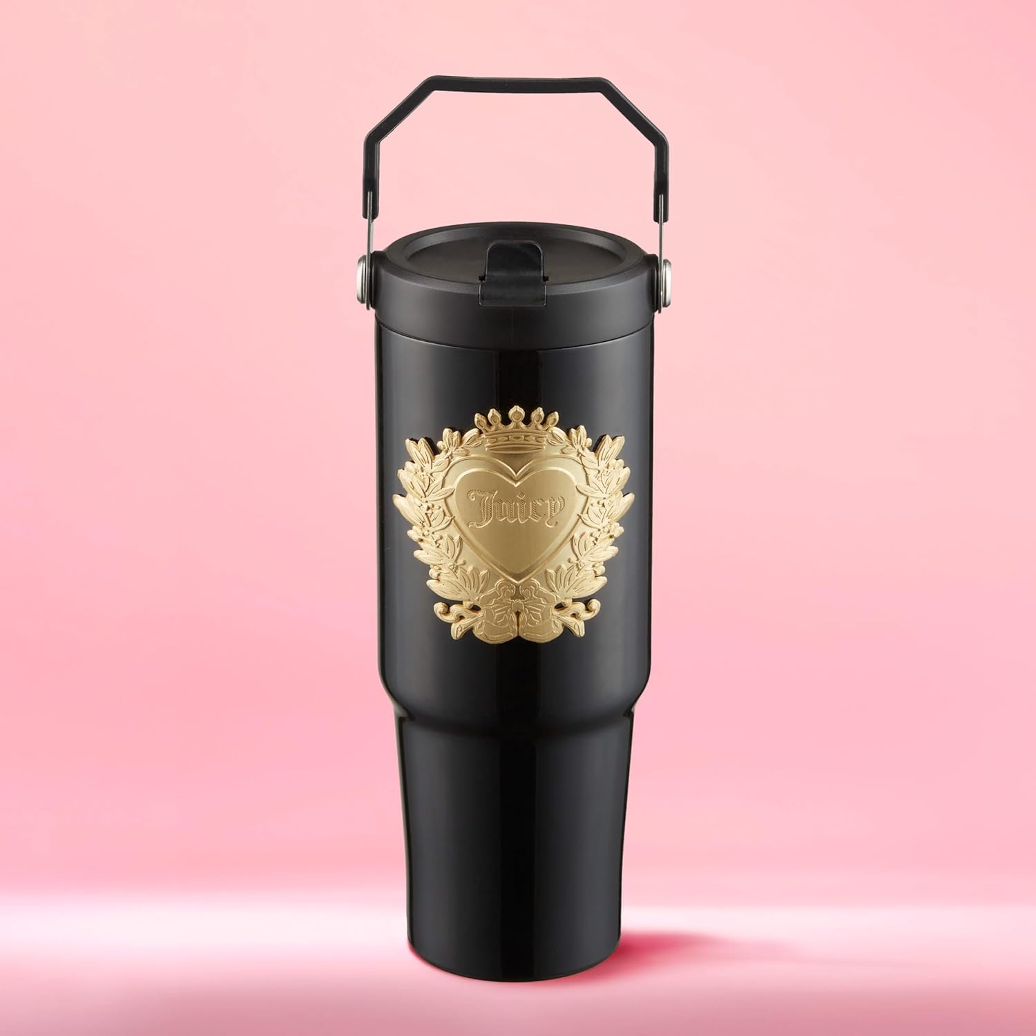 1 review for Juicy Couture 30oz Flip Flow Stainless Steel Tumbler With Flip Straw and Carry Handle, Hot Pink 3D Gold Logo
