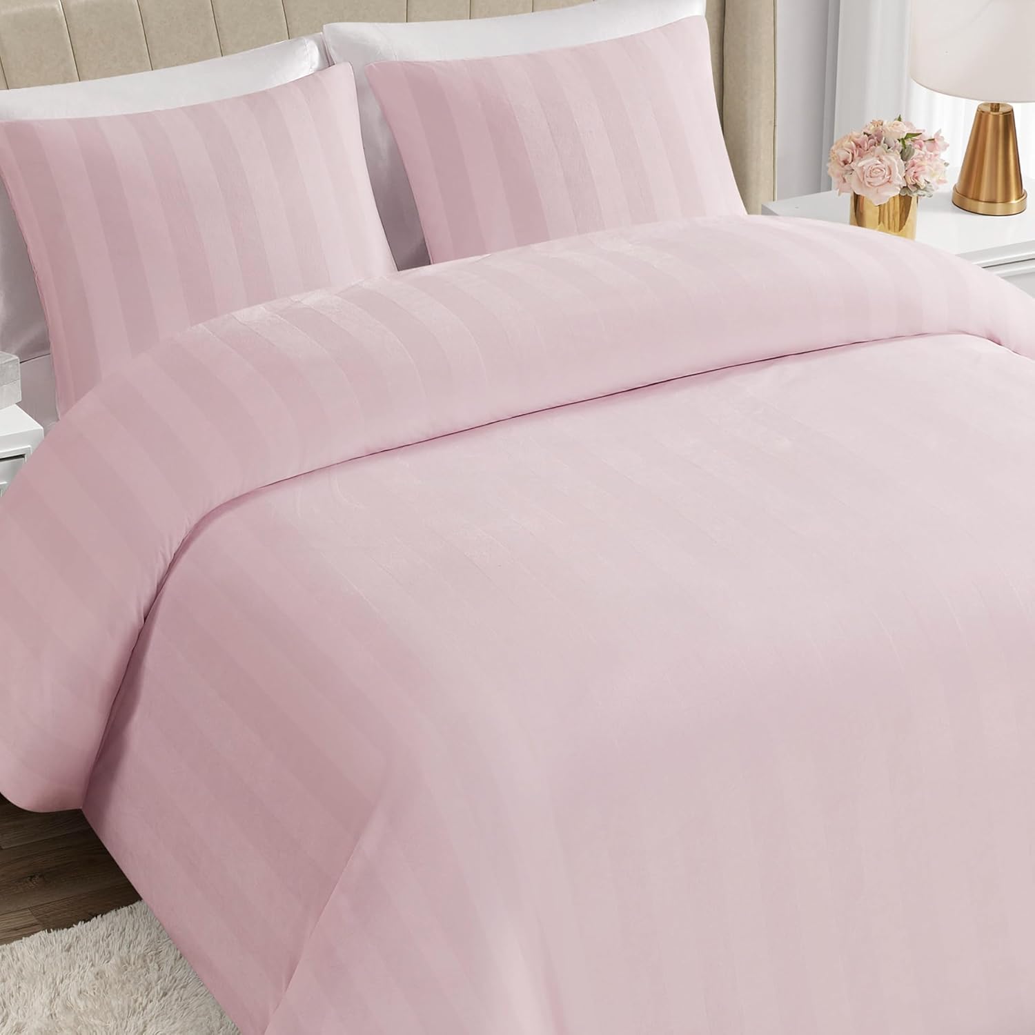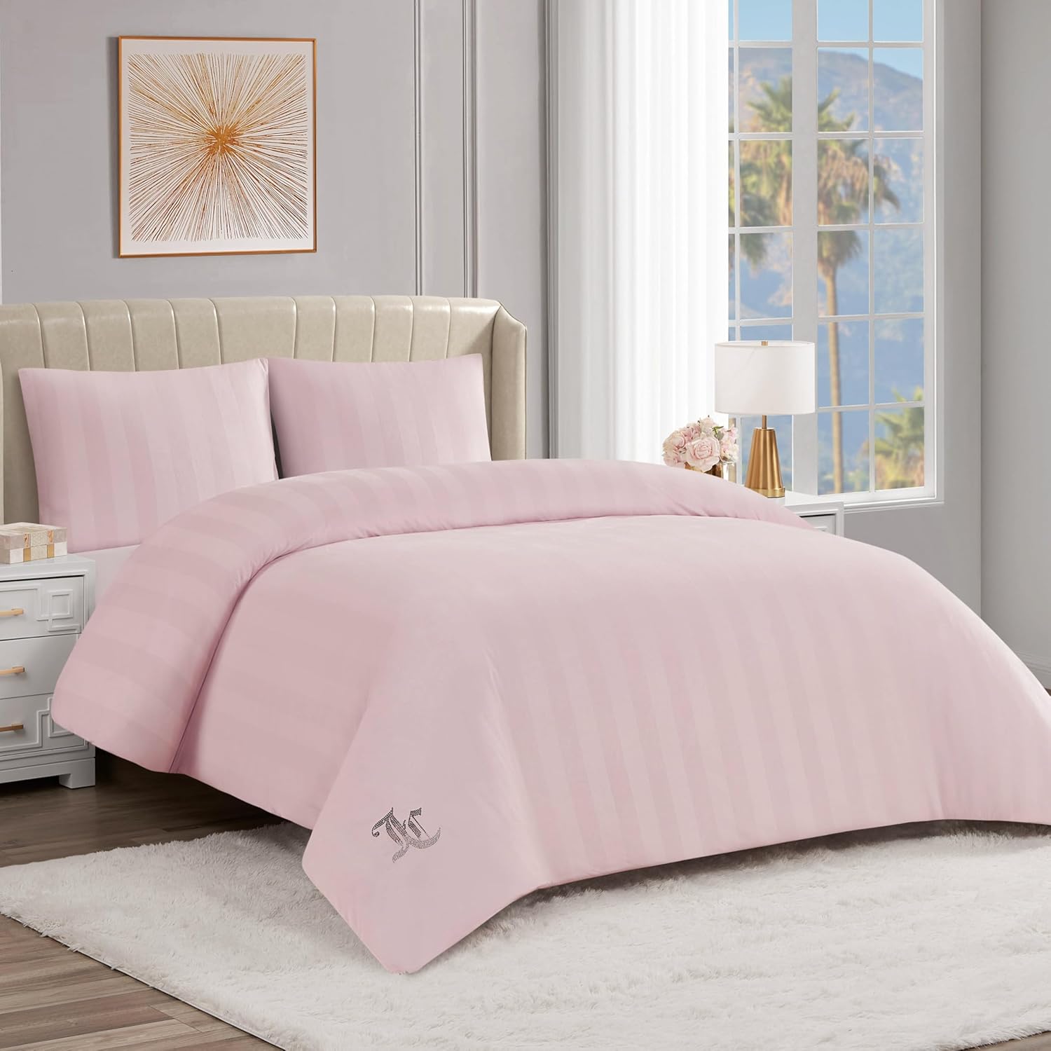 Juicy Couture Jenny Velour Striped Jacquard Queen/Full Size Duvet Cover Bedding Set Ensemble – Pink 3 Piece Set