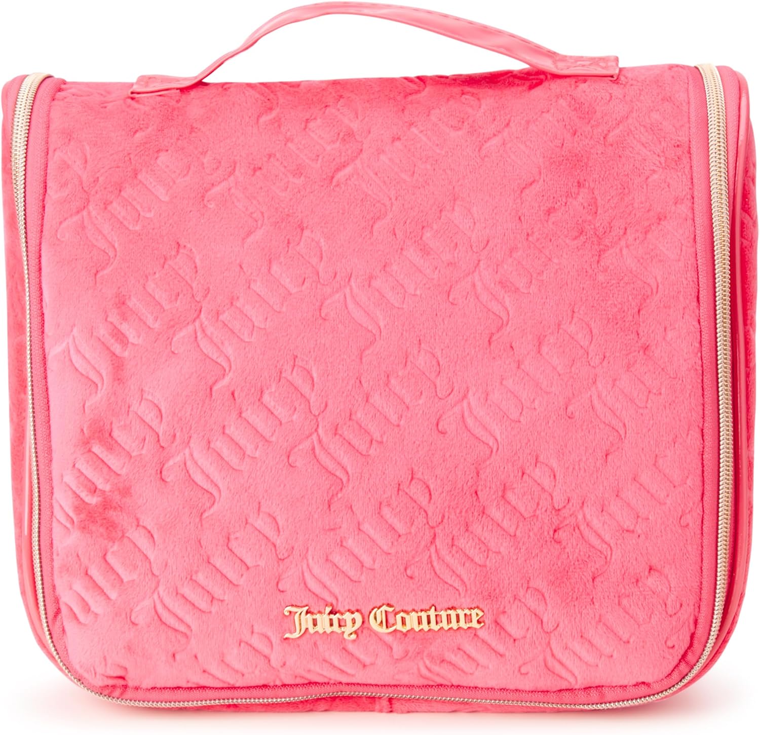 Juicy Couture Pink Velour Makeup Bag with Hanging Hook for Travel