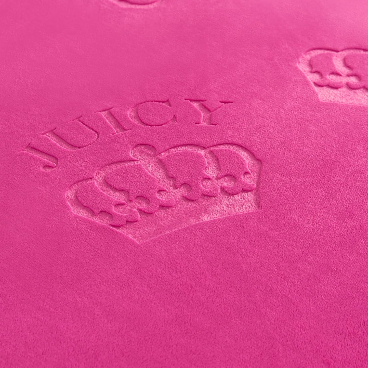 Juicy Couture Plush Reversible Embossed Crown 4-Piece Full/Queen Comforter Set with Decorative Pillow, Hot Pink