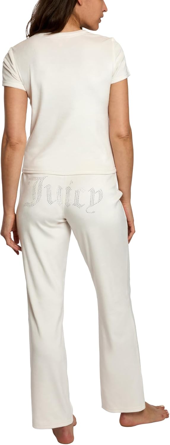 Juicy Couture Women’s 2 Piece Velvet Fleece Short Sleeve Shirt and Pants Lounge Sleepwear Set