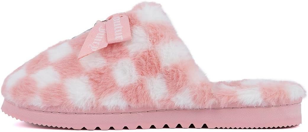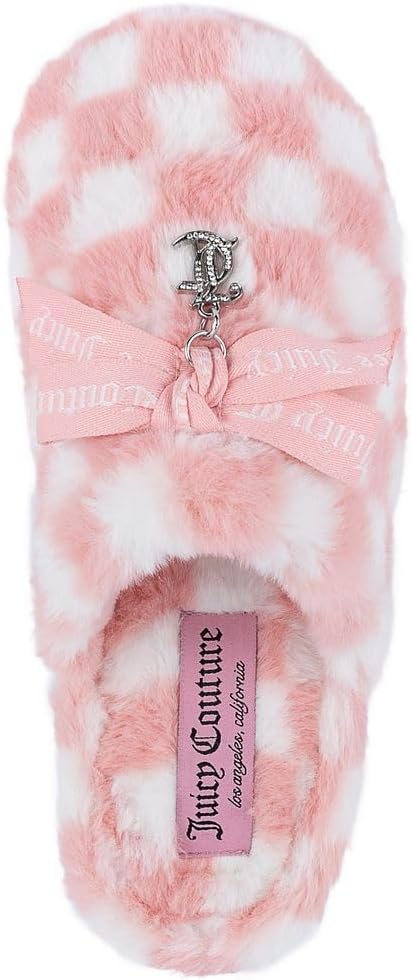 Juicy Couture Women's Faux Fur Slippers – Fuzzy Closed-Toe, Fluffy Winter House Shoes, Comfortable Slip-Ons juicy juice