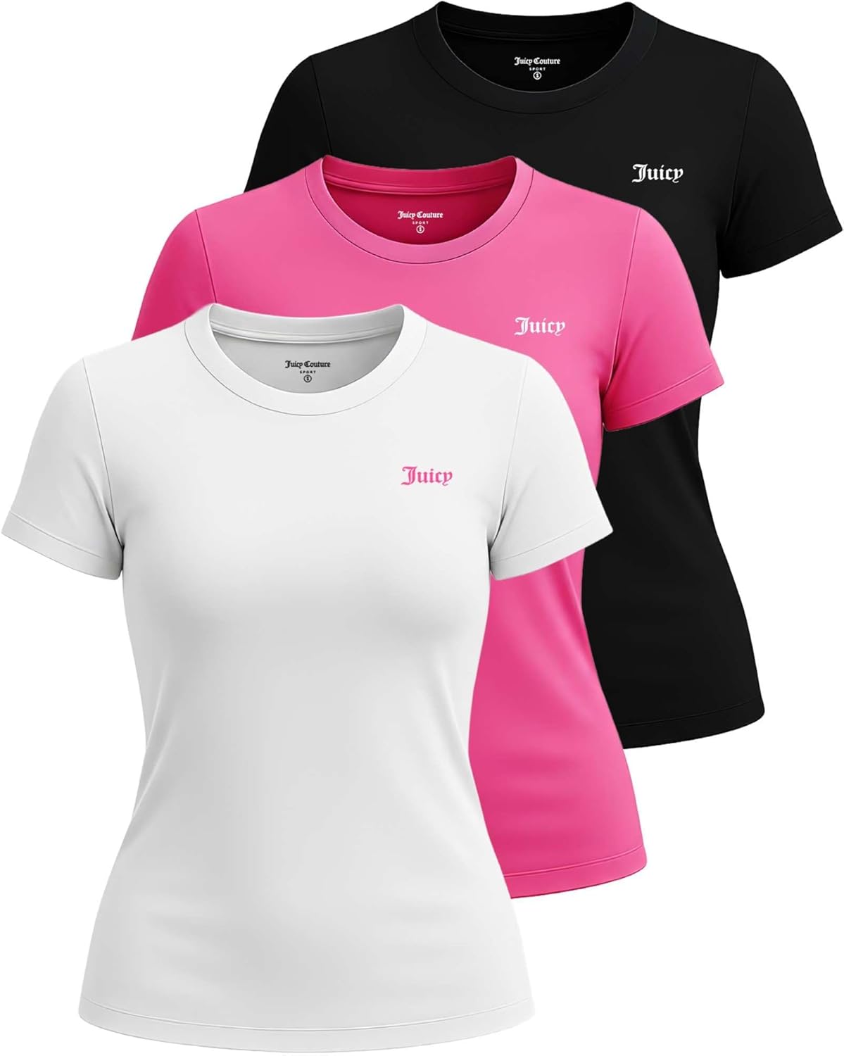 Juicy Couture Women's Short Sleeve Athletic T-Shirts – Workout Tops for Fitness, Yoga, Pilates, Gym & Activewear (Plus) skims