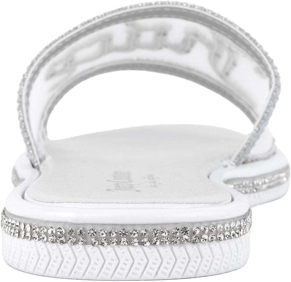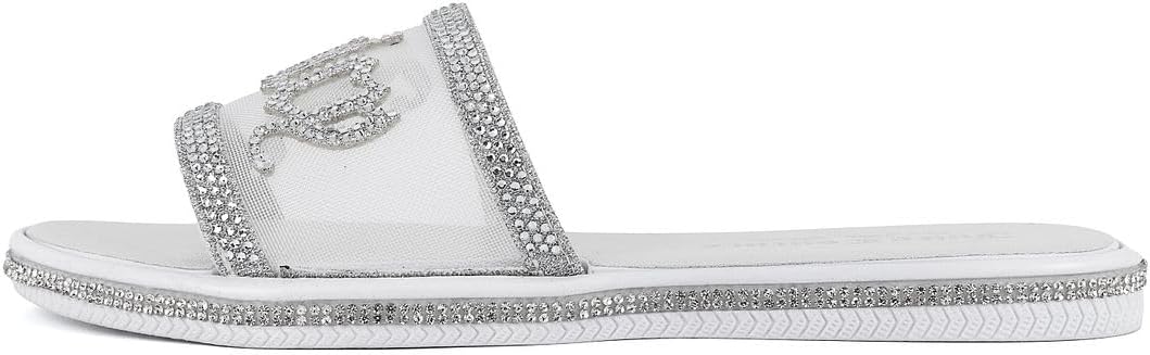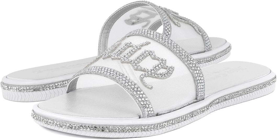 Juicy Couture Women’s Slide Sandals – Glitter Bling Open Toe Sparkle Flats – Dressy Summer Casual Footwear