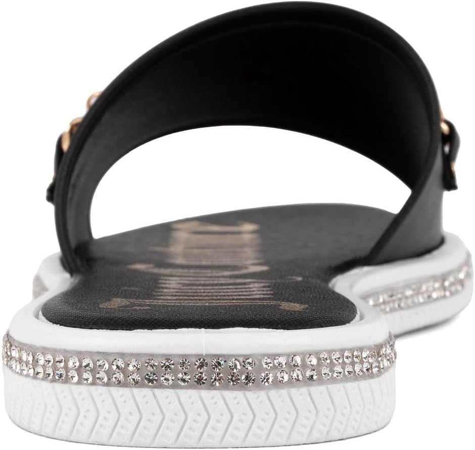 Juicy Couture Women's Slide Sandals - Glitter Bling Open Toe Sparkle Flats - Dressy Summer Casual Footwear scholar