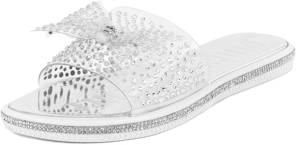 Juicy Couture Women's Slide Sandals - Glitter Bling Open Toe Sparkle Flats - Dressy Summer Casual Footwear juicy couture bag