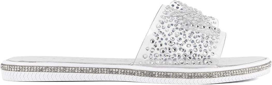 Juicy Couture Women’s Slide Sandals – Glitter Bling Open Toe Sparkle Flats – Dressy Summer Casual Footwear