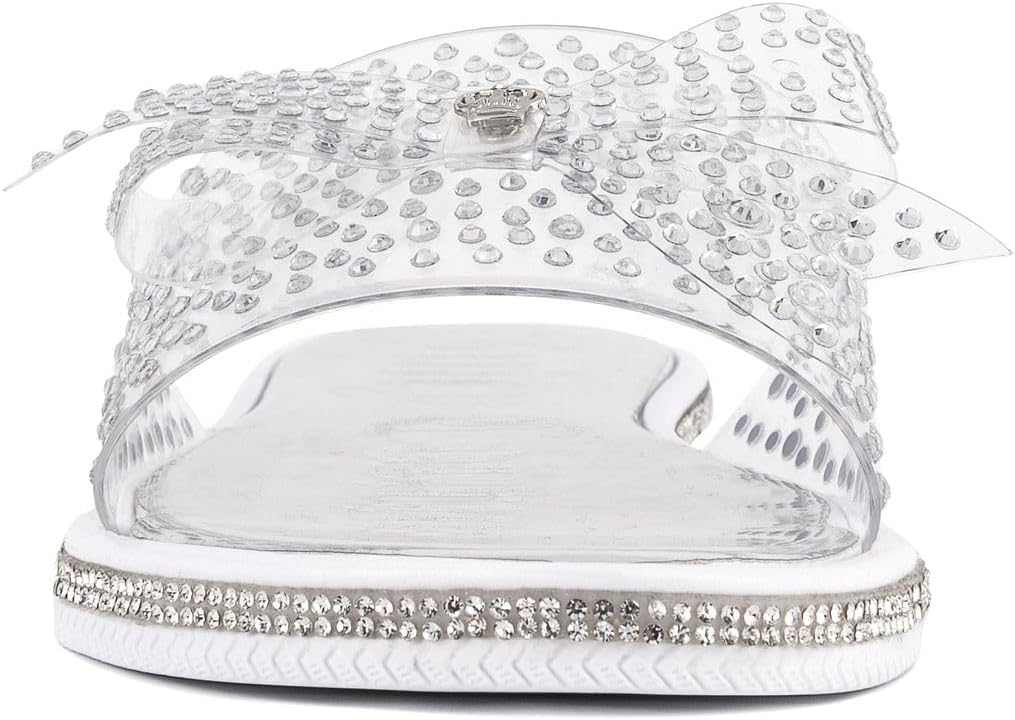 Juicy Couture Women's Slide Sandals - Glitter Bling Open Toe Sparkle Flats - Dressy Summer Casual Footwear juicy crab