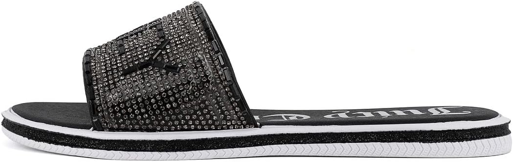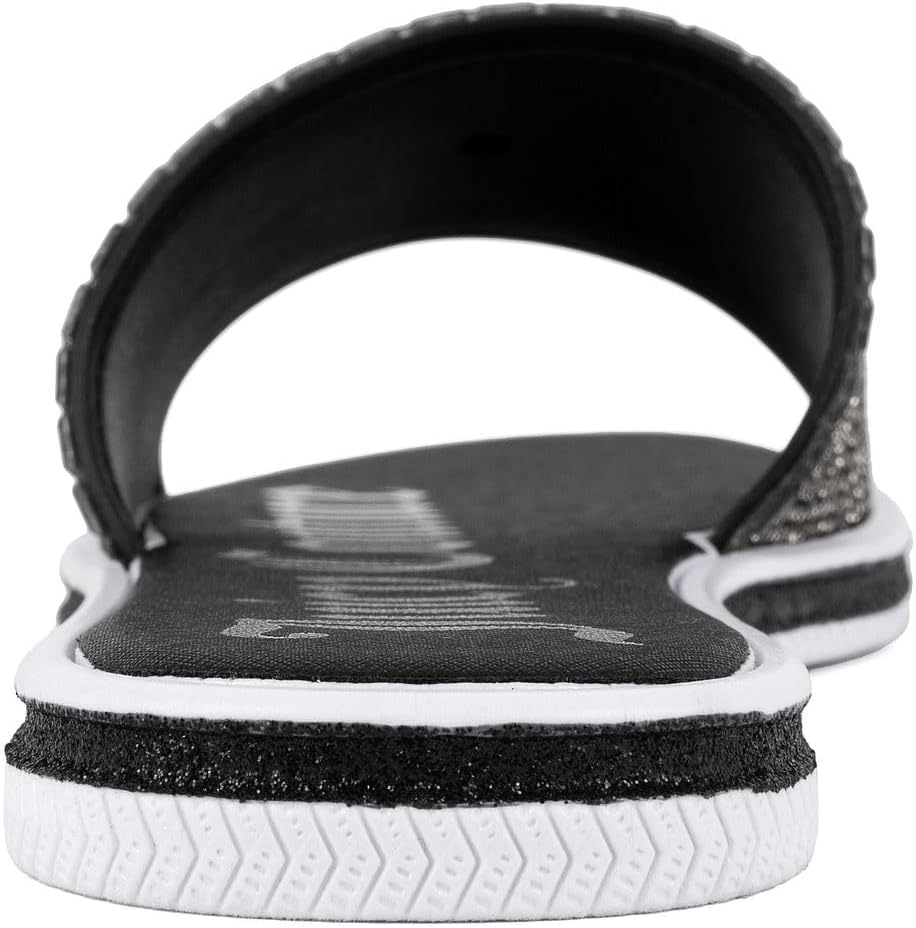 Juicy Couture Women’s Slide Sandals – Glitter Bling Open Toe Sparkle Flats – Dressy Summer Casual Footwear