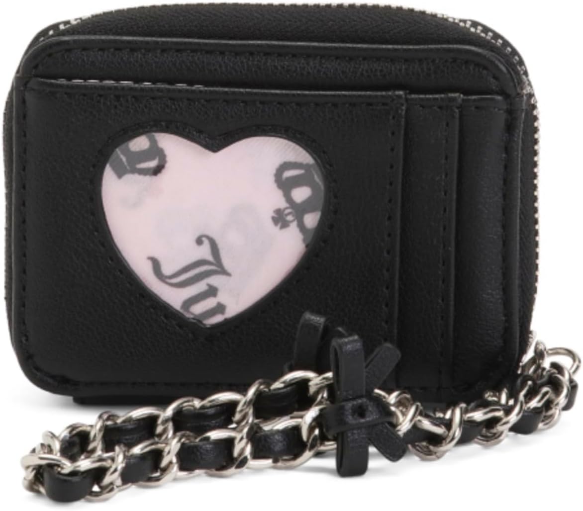 Juicy Couture Women’s Square Zip Around Wristlet Wallet – Card Holder with ID Window & Secure Zip Closure – Demure Liquorice Black