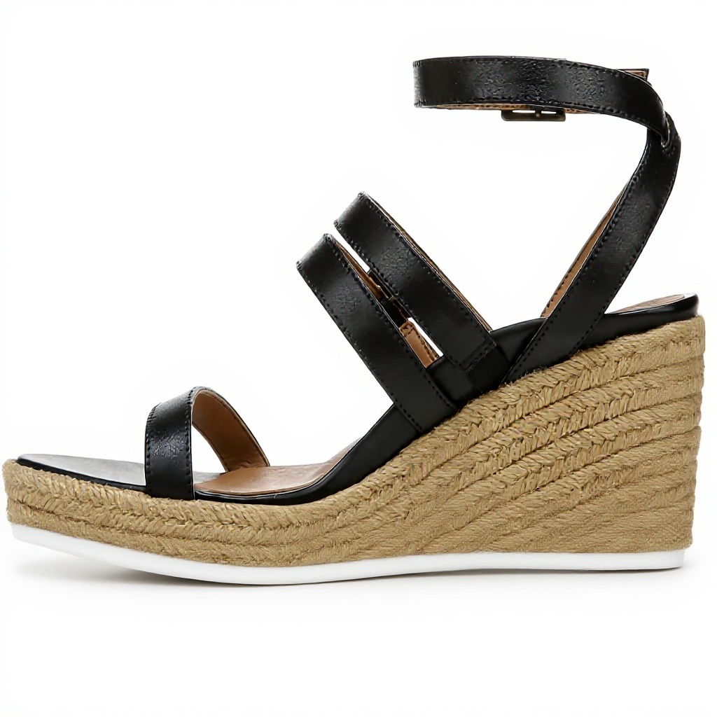 - Jute-wrapped wedge heel offers a stylish, stable base for various occasions.