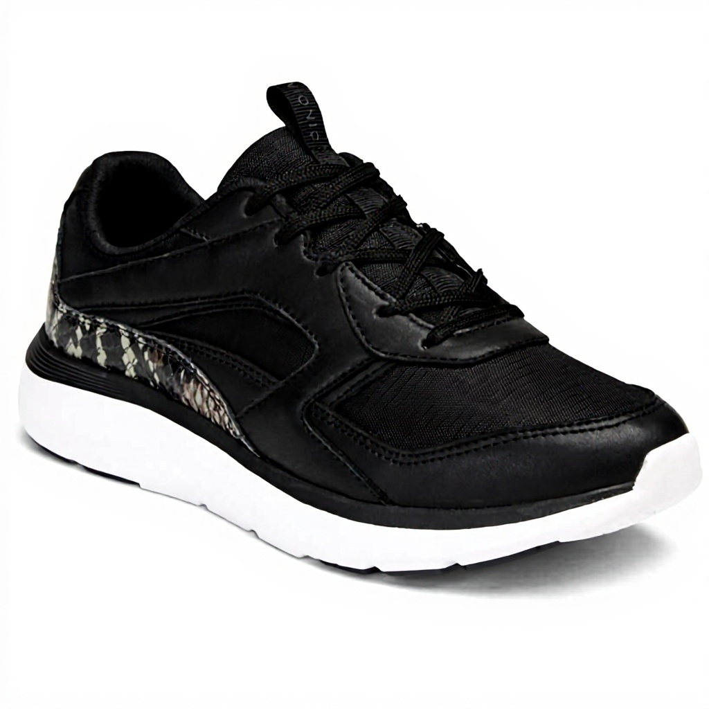 Available in multiple sizes including 3 UK and color options like Black Boa, these medium-fit shoes feature Vionic’s signature orthotic insole technology. The dual-density outsoles offer enhanced stability and shock absorption, while the lace-up design ensures customizable fit and support for various foot shapes.