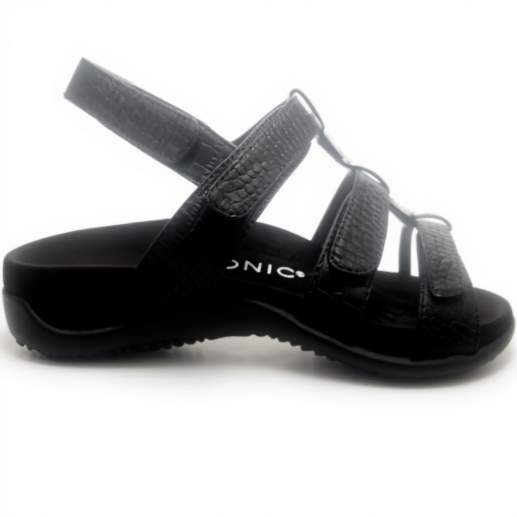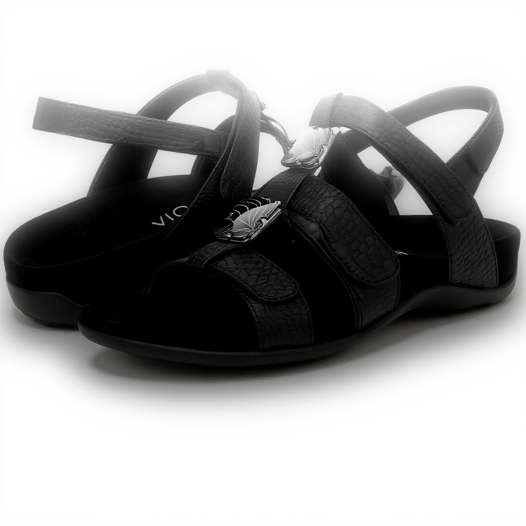 These sandals measure approximately 27.94 x 20.32 x 11.43 cm and weigh 698.53 grams, offering a lightweight yet sturdy build. Available in multiple sizes including wide fit options such as 4.5 UK Wide to 9 UK Wide, with a Black Crocodile color finish. The durable rubber sole ensures excellent grip and traction, enhancing stability on different surfaces. The item model number is 44AMBER-SNA, and it is part of Vionic’s women’s footwear collection.