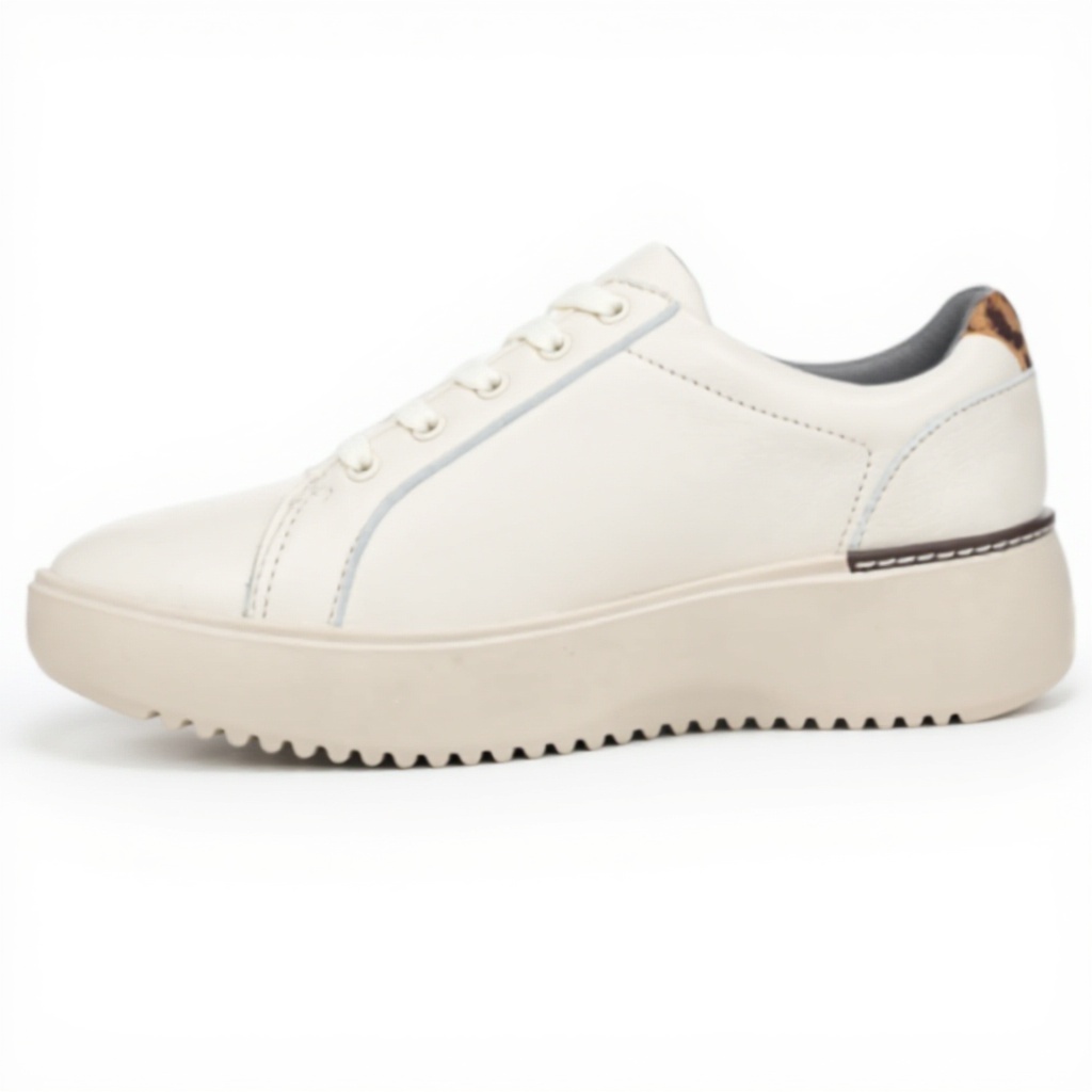 These trainers are available in various UK sizes from 3 to 11, including wide options, and colors such as Cream Tumbled Leather and Tan Leopard Suede. The lace-up design ensures a secure fit, while the materials provide breathability and long-lasting wear. Weighing lightly for easy mobility, they are ideal for everyday use without compromising on support.
